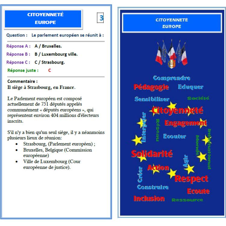 C’est pour alléger le travail des enseignants et permettre à un plus grand nombre de jeunes de mesurer leurs connaissances de manière ludique, qu’il nous semble intéressant de mettre à disposition de différents lieux du département une « mallette » contenant l’ensemble des cartes Q.C.M. déjà élaborées.