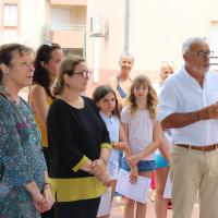 Mme Lehoux, professeur, à l'extrème gauche ; M. Porteix, Maire de Sorède, au centre,