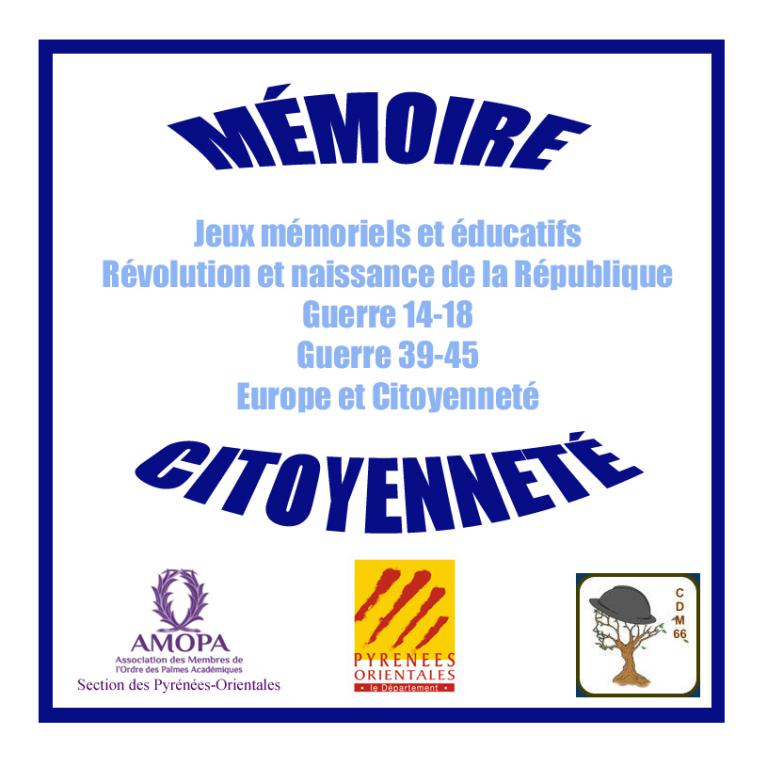 Dans le cadre de son projet « Mémoire et citoyenneté », l’AMOPA 66 a souhaité, à la demande du C.D.M. 66, apporter son concours en proposant les compétences éducatives de ses membres pour la conception et la mise en œuvre d’un projet comportant la création d’outils ludiques à destination des élèves du primaire, collèges et lycées du département afin de les sensibiliser sur des thèmes actuels importants comme la mémoire des conflits majeurs du XXème siècle, la Citoyenneté, les valeurs de la République, l’Europe, l’Histoire locale, le respect de l’environnement, etc.