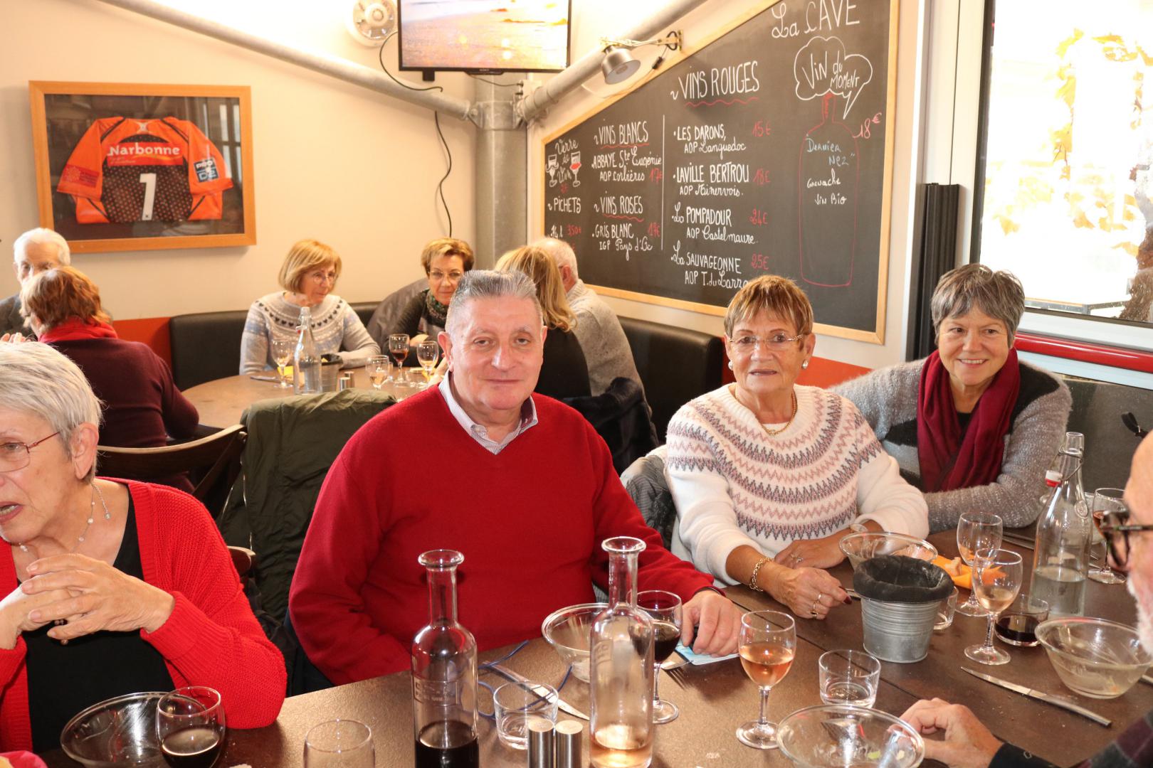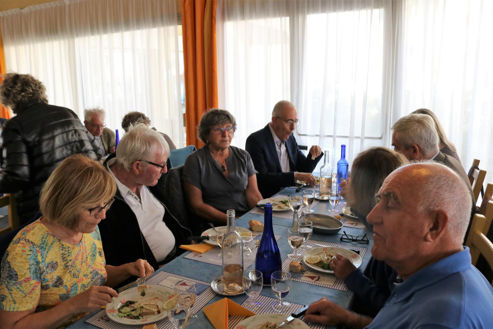 Nous étions une quarantaire d'adhérents à nous retrouver sur la terrasse du restaurant, prêts à déguster un menu du pays, le repas proposé par notre ami, André Julien et préparé par Bernard, le cuisinier catalan de la brasserie.