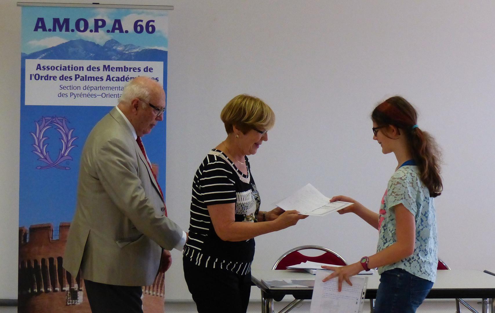 Avec son texte sur un « Voyage au pays de la gourmandise », la jeune fille est la seule primée de l'académie. En plus de la cérémonie nationale à Paris, l'Amopa 66 a organisé mer au collège Jules- Verne une seconde remise de récompense pour Cassandre et les élèves de sa classe participants. Pour Robert Lopez, président de l'association la copie de Cassandre s'est démarquée par son originalité. « Elle est un encouragement pour le département à défendre la langue française », confie-t-il. Même appréciation pour son enseignante de français Hélène Capmartin, qui note un texte : « Avec beaucoup d'imaginaire, de culture et un talent pour jouer avec les mots ».