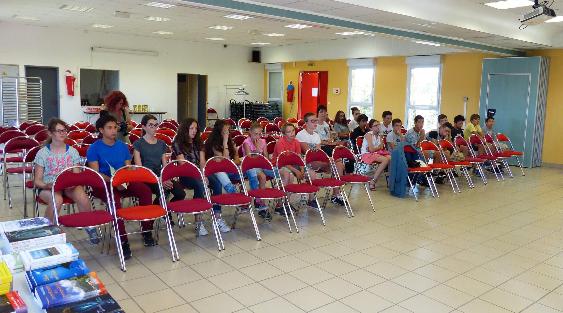 Les élèves filles et garçons réunis et silencieux ont écouté avec beaucoup d’attention M. Robert Lopez, président de l’AMOPA 66 leur parler de l’importance de notre langue et de son rayonnement dans le monde.