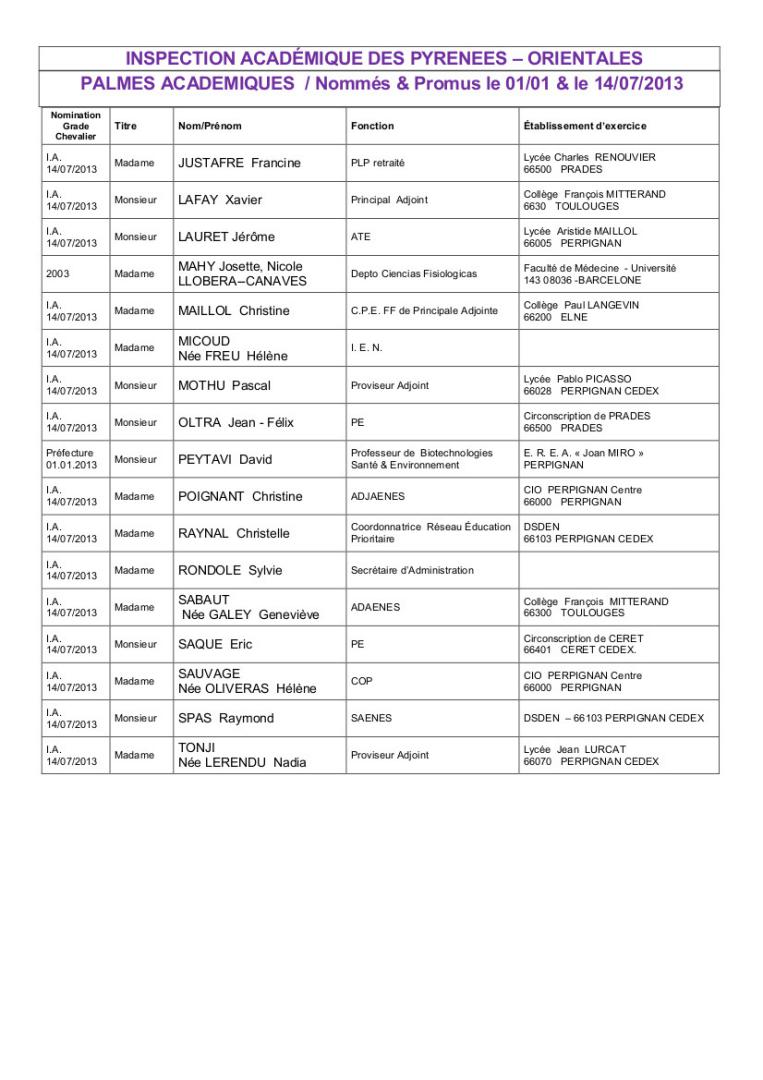 NOMINATIONS ET PROMOTIONS DE JANVIER et JUILLET 2013