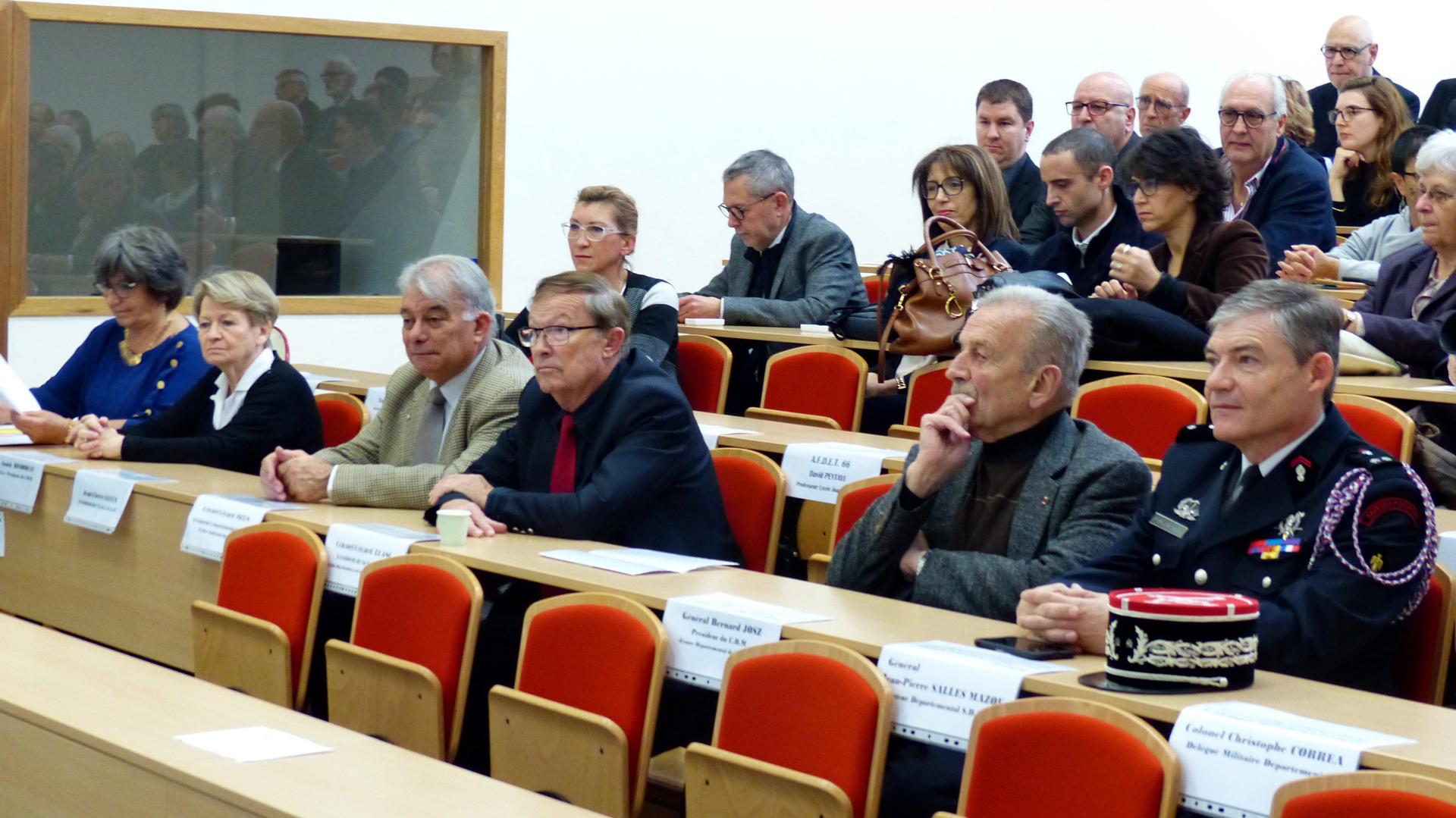 Elle a été présidée par M. Xavier Py, Président de l'UPVD; M. Christian Horgues représentant l'Inspecteur d'Académie DASEN; Mme Marie-Pierre Sadourny, Présidente de la Commission départementale Education & Collèges et M. Guy Ilary, Président de l'Association des Maires des Pyrénées-Orientales qui ont été accueillis par M. Robert Lopez, Président de l'AMOPA66, en présence de nombreux représentants des Institutions et Associations départementales et d'un nombreux public.