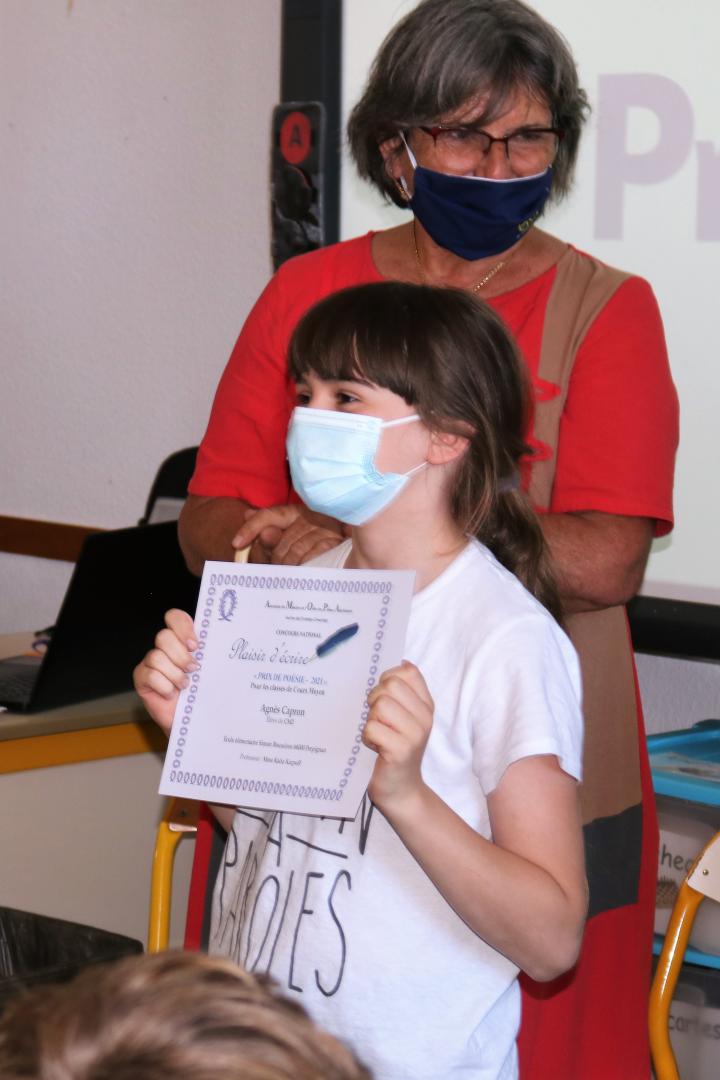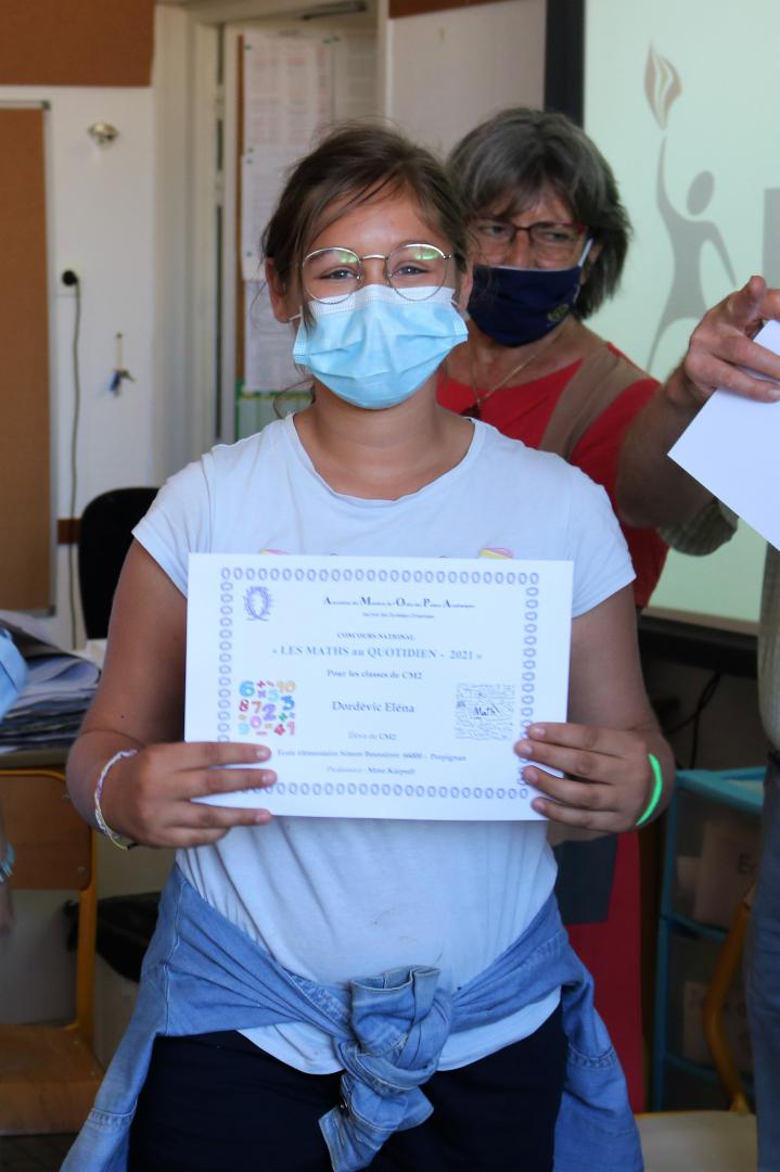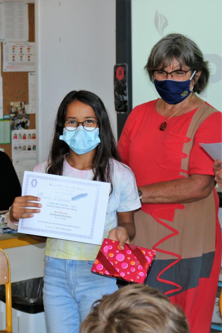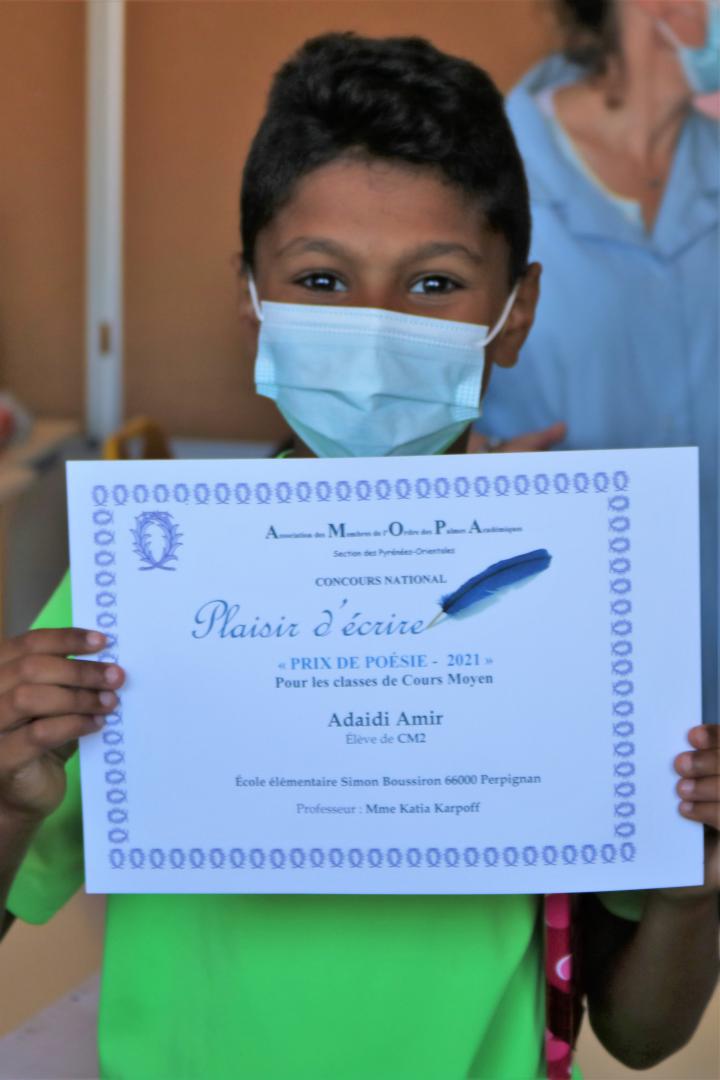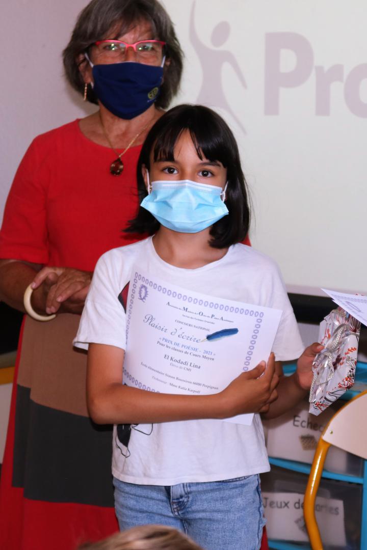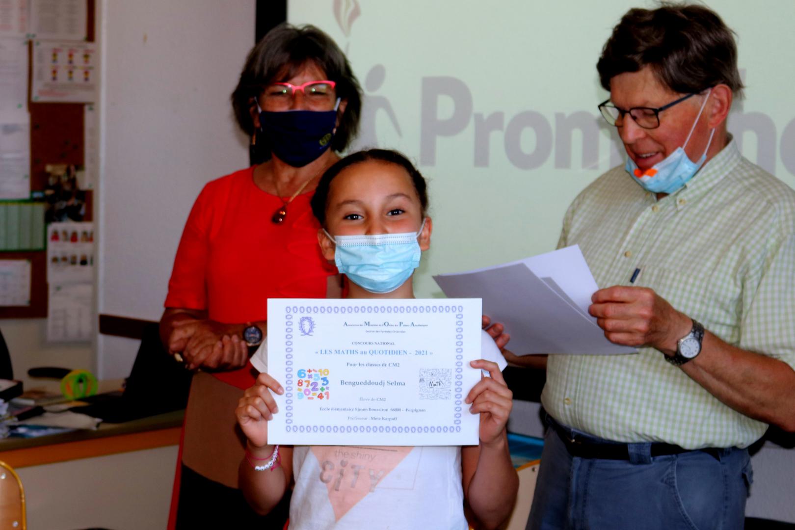 Le livret d’exercices présenté par chaque classe a été reconnu et a donné lieu à une cérémonie de remise des prix aux élèves concernés sous forme de diplômes personnalisés et de livres, par Mme Cécile Brennan-Sardou, présidente départementale de l’AMOPA 66 accompagnée par les membres du bureau organisateurs.