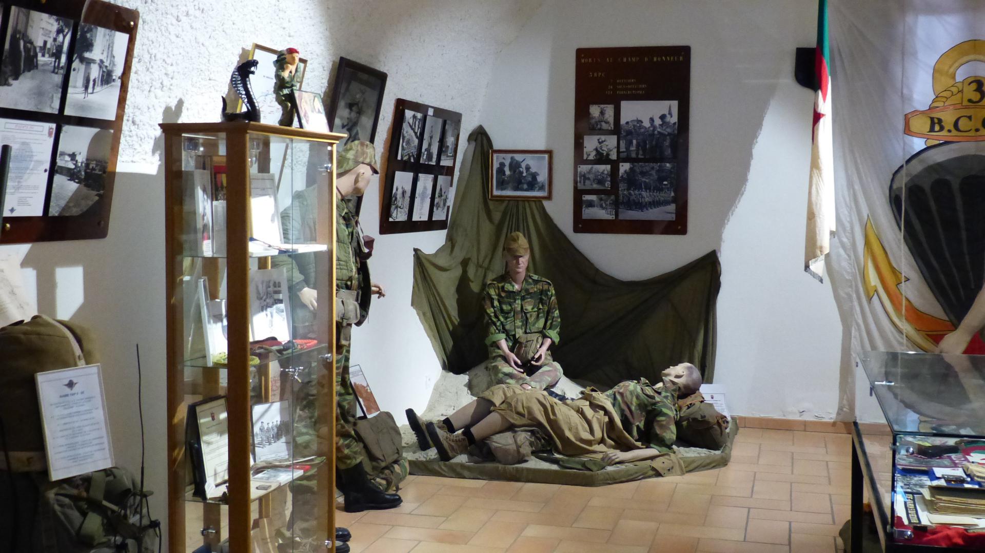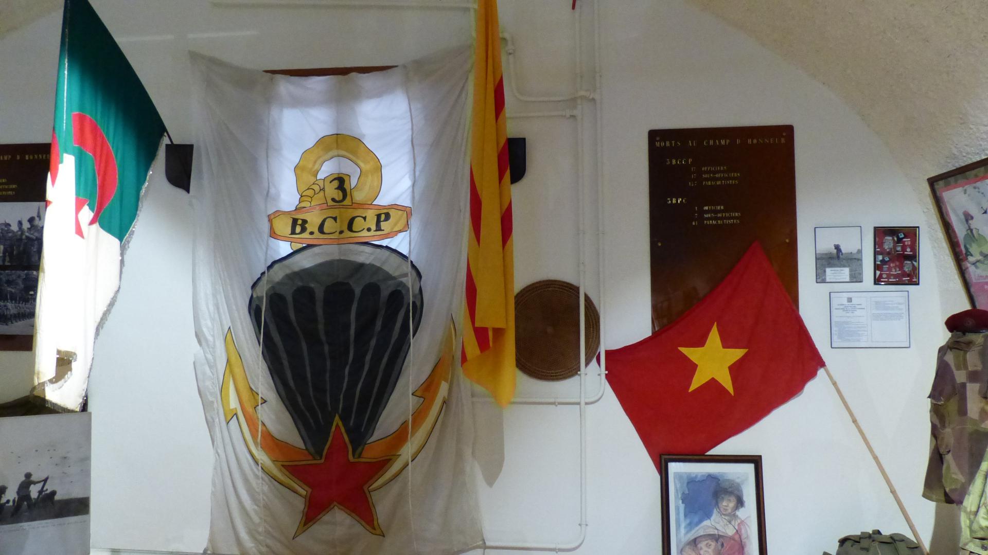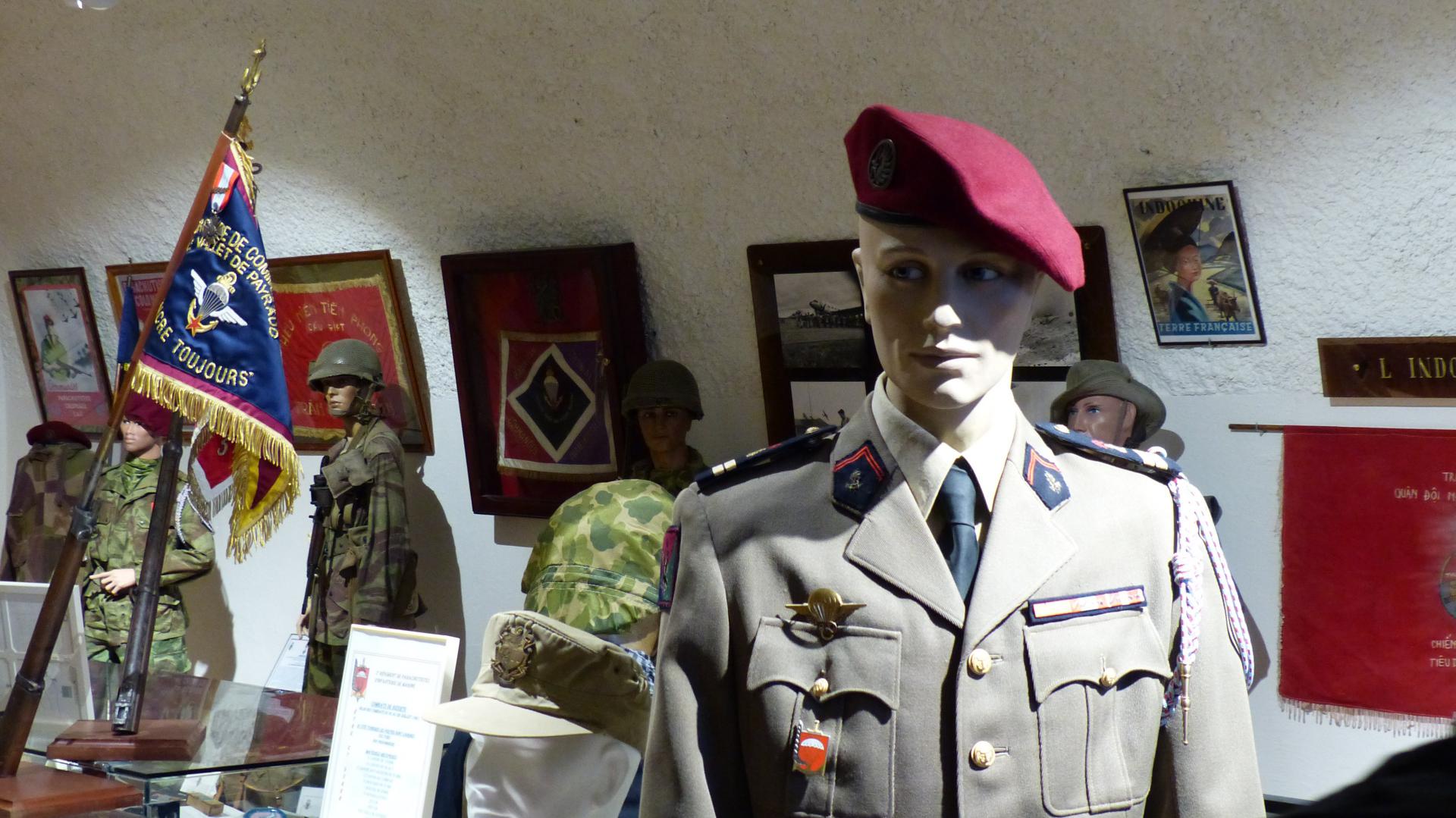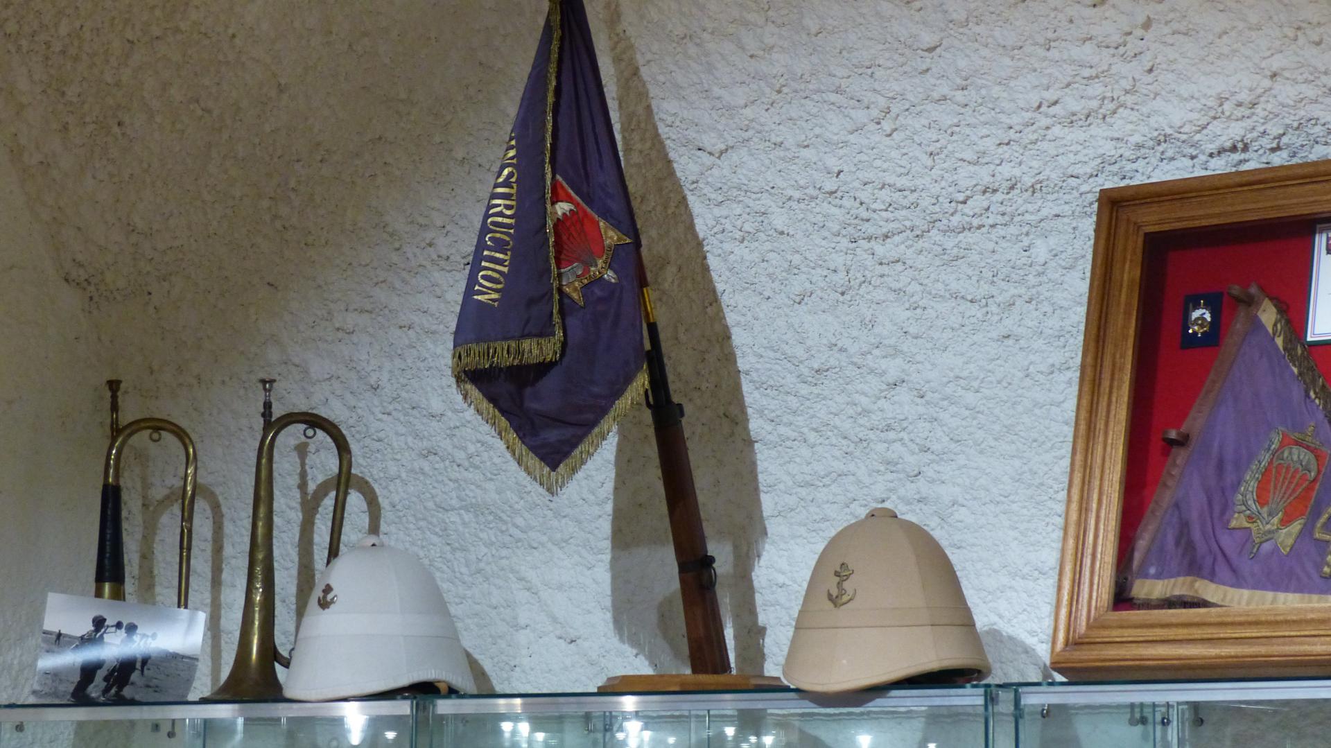 Après un bref historique sur cet ancien quartier de cavalerie datant de 1724 et où le futur maréchal Murat s’engagea, le groupe s’est rendu à la salle d’honneur du 3e RPIMa, où les attendait l’adjudant-chef Bertrand, officier traditions de la prestigieuse unité. Pendant plus d’une heure, le militaire a fait visiter, avec force détails, ce lieu mythique où sont entreposées les reliques d’un des régiments à la plus grande renommée de l’armée française qui pourtant n’est âgé que de soixante-quinze ans. Armement, iconographie, matériels, pièces rares et documents exceptionnels ont été présentés, balayant les innombrables campagnes où s’est illustré le 3e RPIMa.