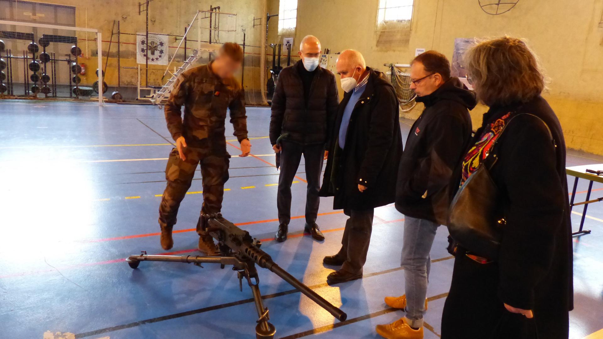 La délégation s’est ensuite déplacée vers le gymnase où un groupe de combat a présenté divers armements individuels et collectifs, comme la mitrailleuse de 12,7, le fusil d’assaut HK-416, les diverses mitrailleuses légères, le pistolet automatique GLOCK ainsi que l’arme des tireurs de précision.