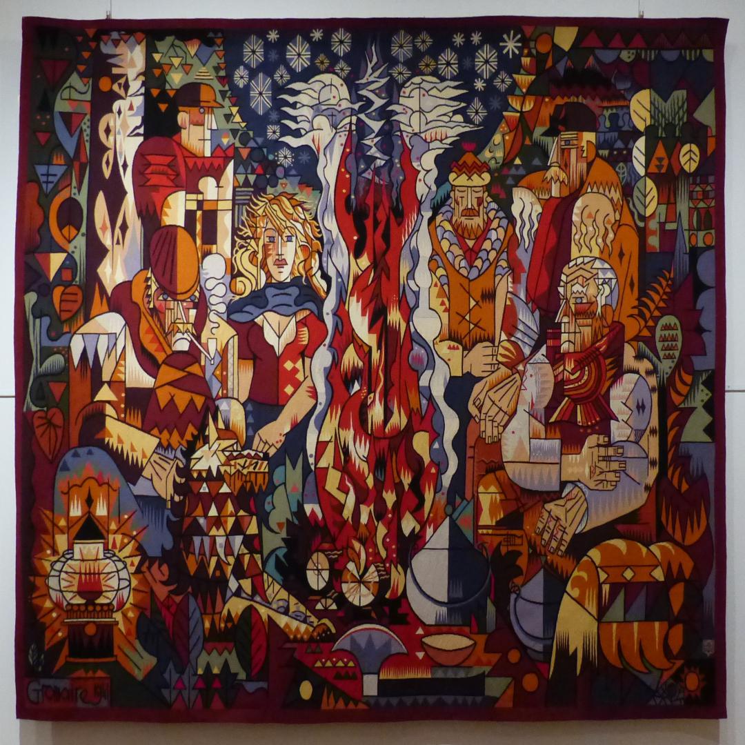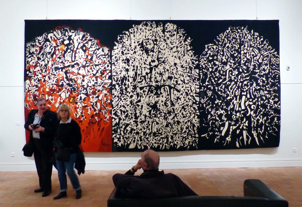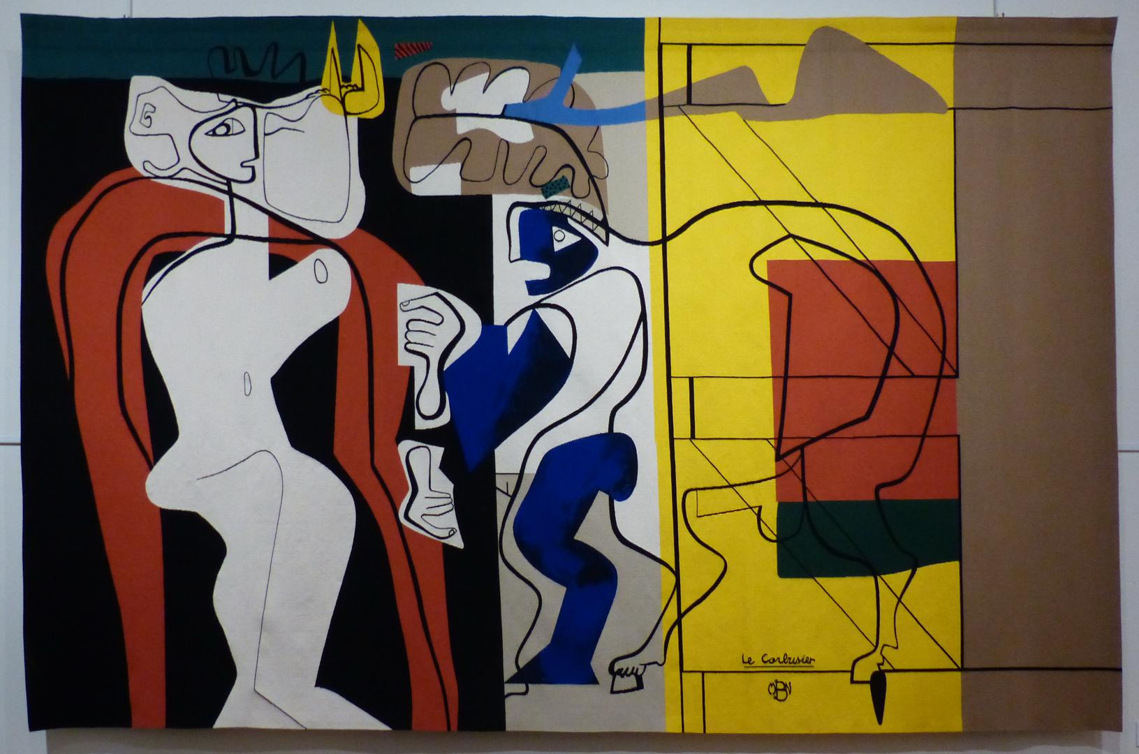 • "Figures et narrations" ouvre le panorama des représentations figuratives. On y trouve des artistes particulièrement intéressés par la forme monumentale comme le sculpteur Henri-Georges Adam ou l’architecte Le Corbusier. La tapisserie est aussi une manière ample de développer des narrations sous forme poétique (Joan Miró) ou avec plus de réalisme (Marcel Gromaire, Eduardo Arroyo).