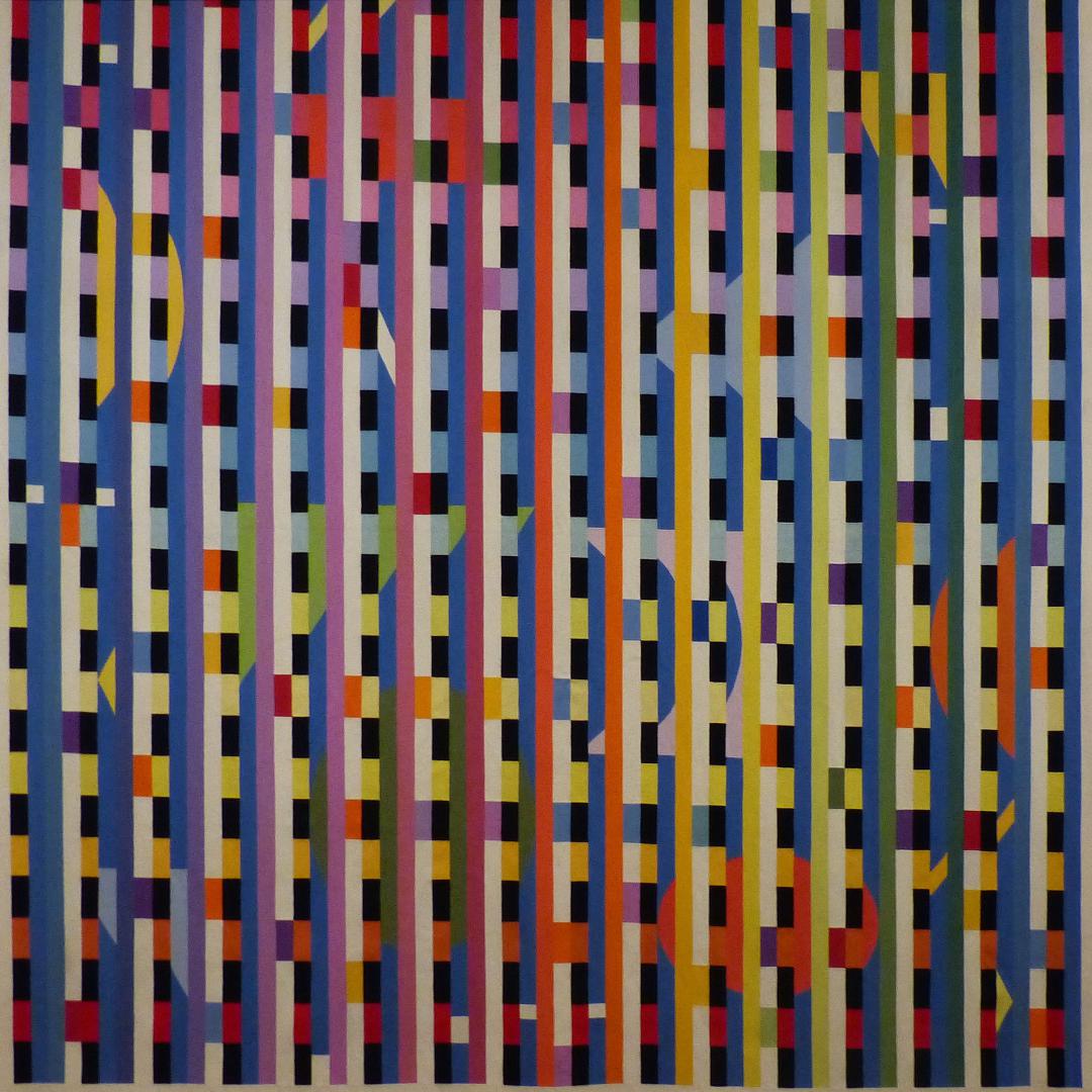 • "Formes, rythmes et couleurs" regroupe des artistes attirés par une abstraction de type géométrique, allant de l’art optique (op’art) représenté ici par Yaacov Agam et Victor Vasarely vers les formes moins rigoureuses de Jean Arp ou Alexander Calder. Sonia Delaunay est, avec ses rythmes colorés, une des artistes les plus actives en tapisserie : elle était précurseur dans l’abstraction avec un système de rythmes créés par les couleurs, et portait un intérêt particulier au textile.