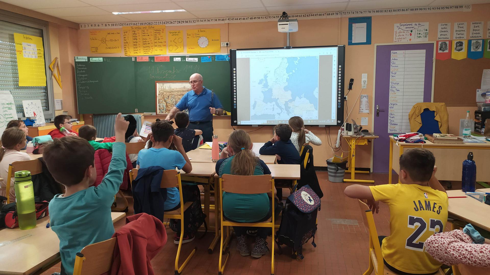 Comme tous les ans, à l'occasion de la célébration de l'armistice du 11 novembre 1914, Bernard KRUTT, membre du bureau de l'AMOPA 66, est allé à la demande des professeurs, dans 2 classes l'école Prévert de Cabestany et dans 2 classes de l'école d'Alenya afin de présenter et d'expliquer aux élèves, dans le cadre du devoir de mémoire, ce que qu'ont été les dernières guerres que notre pays a vécues.