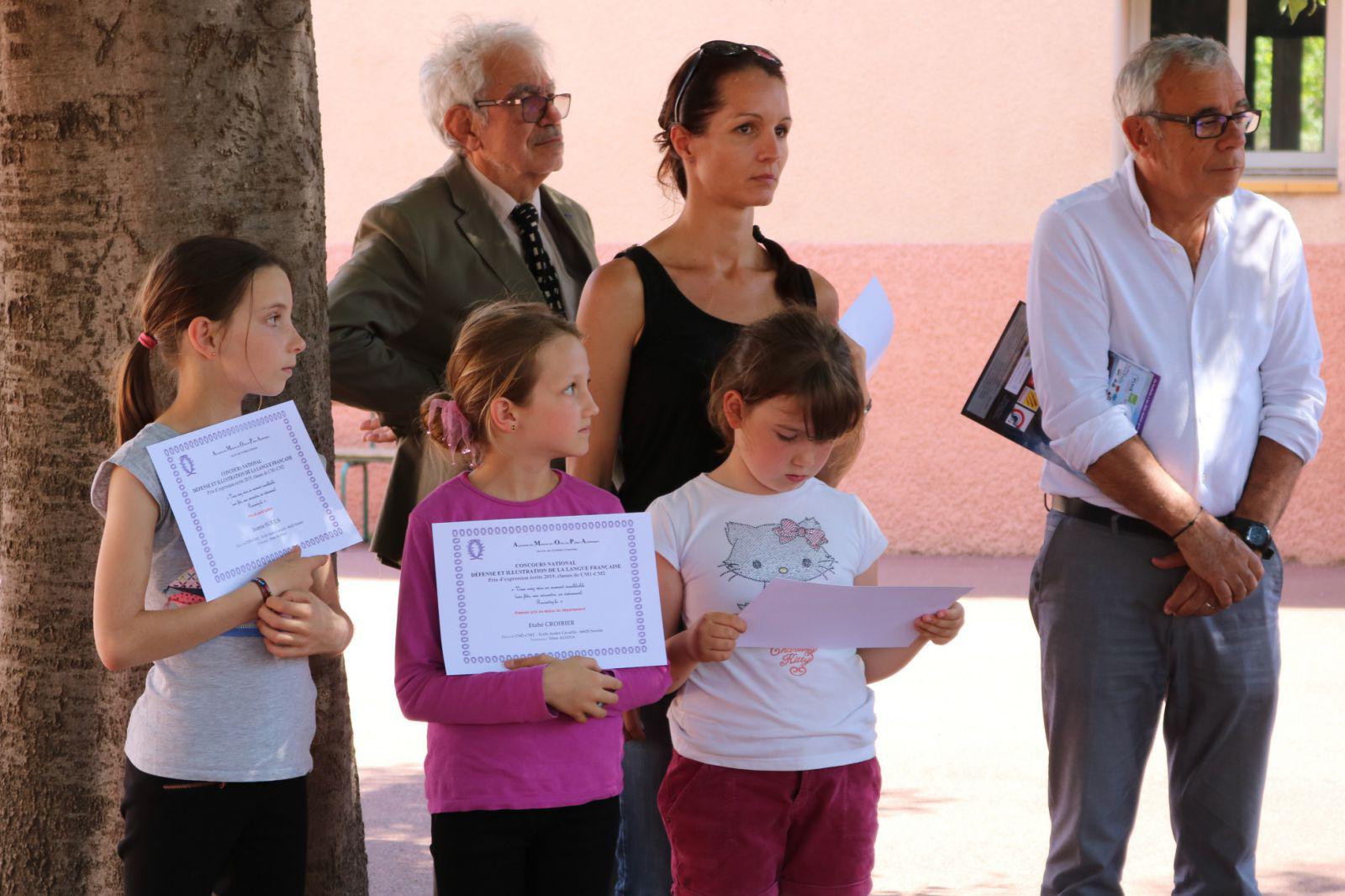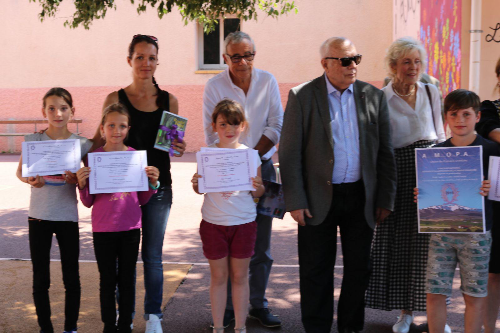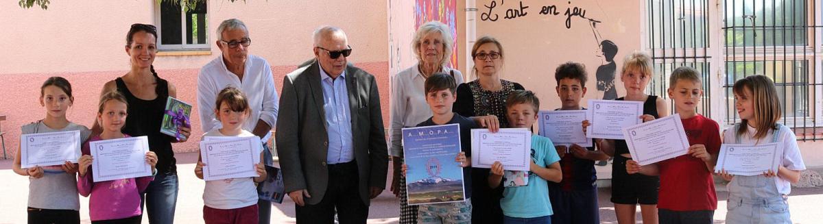 Ils ont remis aux élèves des classes de CM1 et CM2 de Mesdames Katia Karpoff, Dominique Martin et Angélique Pelletier, les diplômes mérités pour leur participation au concours d’expression française organisé nationalement par l’AMOPA dans le cadre de la défense et illustration de la langue française.
