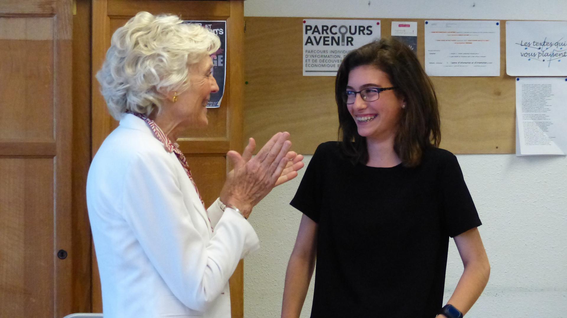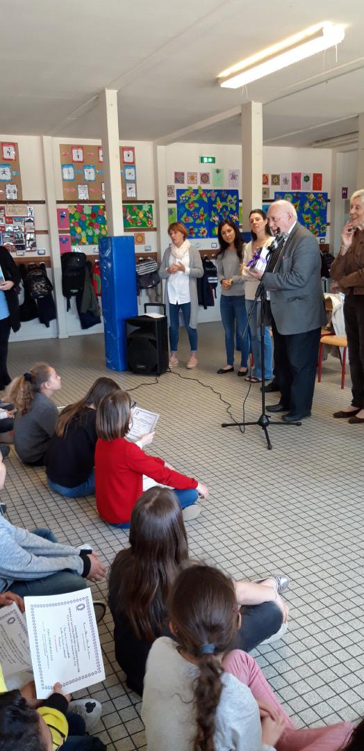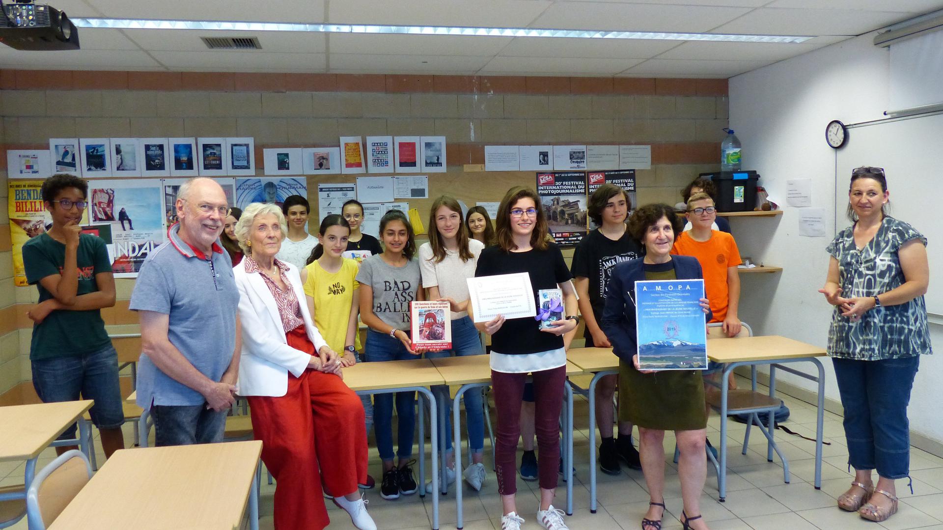 Ils ont pu féliciter une jeune élève de 4ème, Thalia Norgiolini qui a écrit un récit dans le cadre du concours national de l'AMOPA « Prix Maupassant de la jeune nouvelle »sous la conduite de Madame Chemin, son professeur de français.