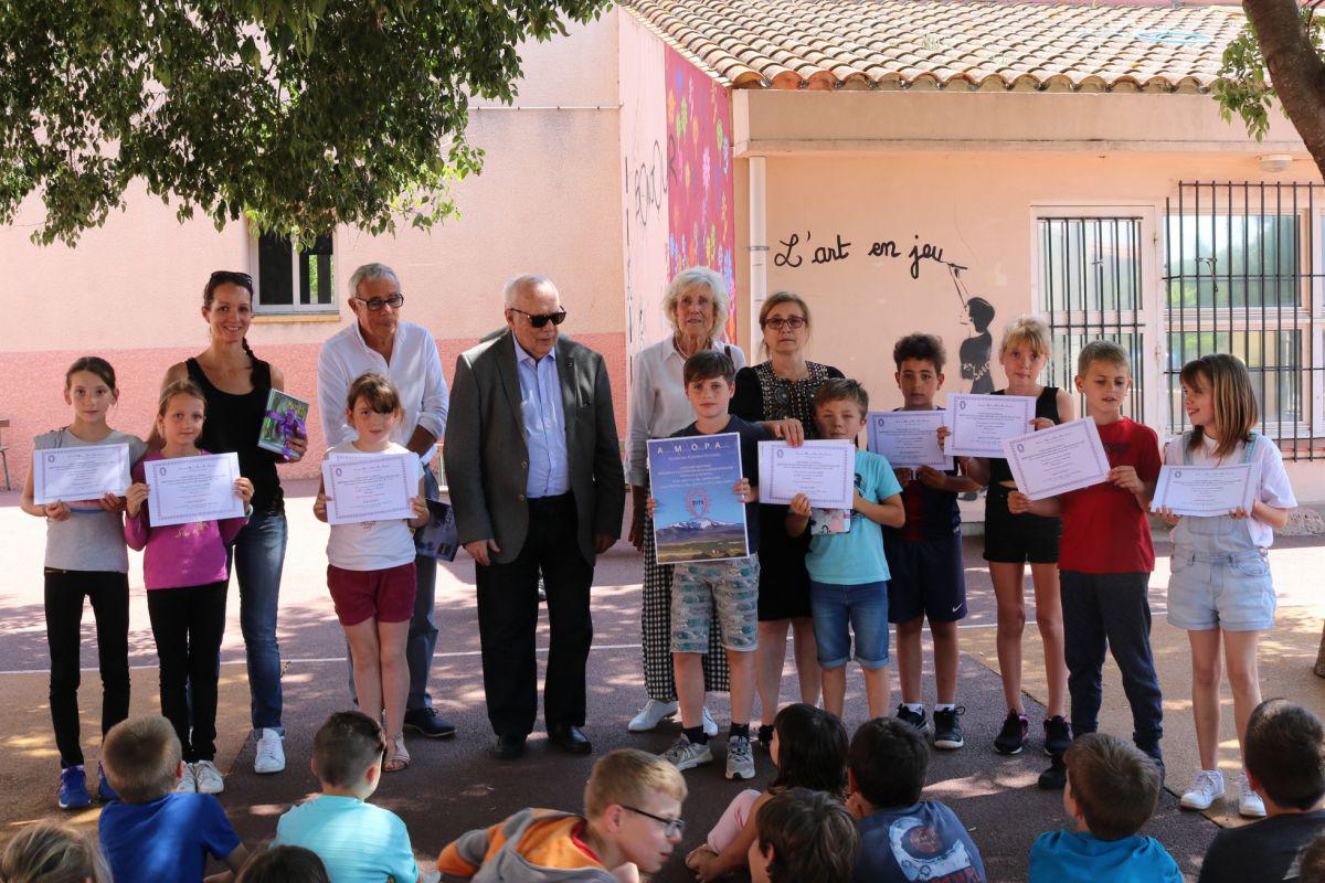 L'élève, Léo Buchet, de la classe de Mme Alsina a été particulièrement remarqué, car sa copie envoyée à Paris au bureau national de l'AMOPA avec les copies sélectionnées du département a reçu le Premier accessit na-tionalpour les classes de Cours Moyen.