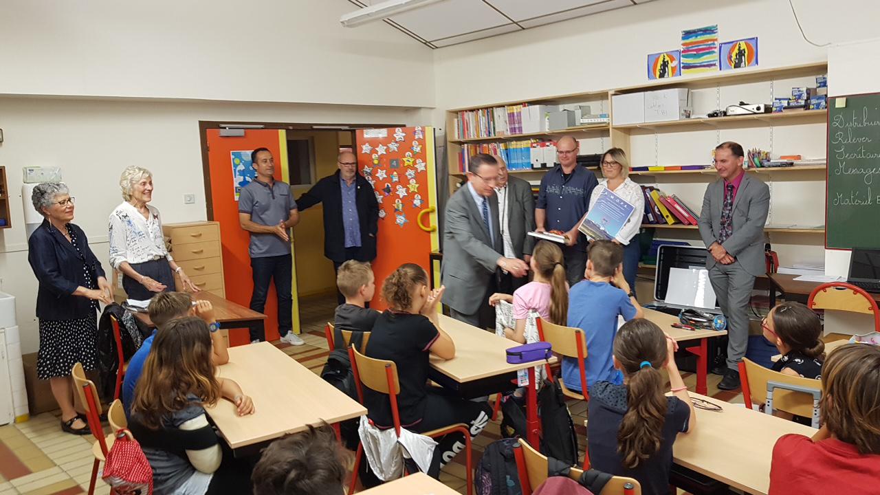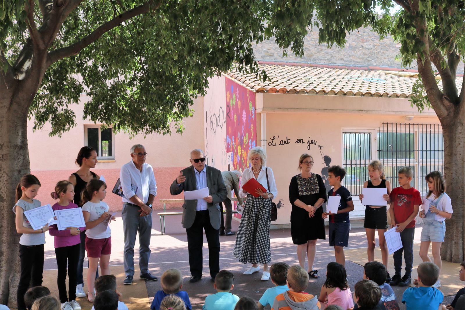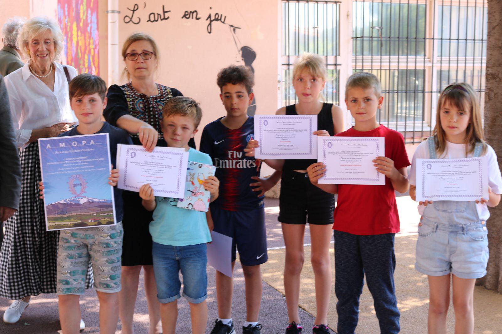 Une délégation du bureau de la section départementale de l’Association des membres de l’Ordre des Palmes Académiques s'est déplacée à Sorède le mardi 28 mai 2019 à l’école élémentaire André Cavaillé où, en présence de M. Yves Porteix, Maire de Sorède, M. Robert Lopez, président de l'AMOPA66 a pu remettre aux élèves des classes de CM1 et CM2 de Mesdames Alsina et Lehoux, les diplômes mérités pour leur participation au concours d’écriture organisé nationalement par l’AMOPA dans le cadre de la défense et illustration de la langue française, dont le sujet était cette année scolaire :