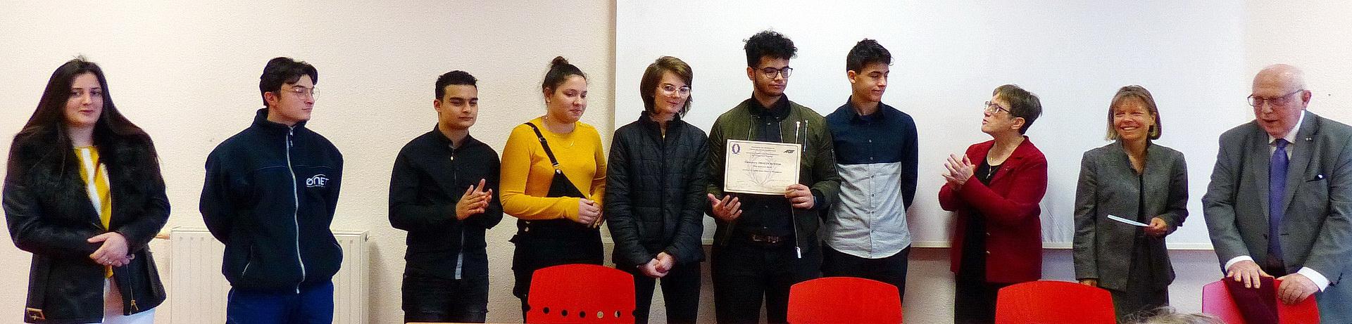 Ce prix constitué par un diplôme et un chèque d’un montant de 500,00€ a été remis au lycée au cours d’une agréable cérémonie qui a permis aux élèves de voir que le travail réalisé avec les conseils de leurs enseignants a été valorisé, cela ne peut que conforter leur engagement pour leur avenir professionnel.