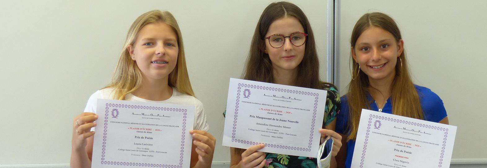 Le mardi 30 juin 2020, une délégation de l’AMOPA 66 composée de M. Bernard Laresche, trésorier et de M. Henri Capell, secrétaire-adjoint est venue remettre les prix du concours « Plaisir d’Ecrire 2020 », à trois élèves du Collège Saint Louis de Gonzague de Port Leucate.