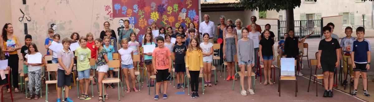Le Jeudi 2 juillet, l’école Simon Boussiron a accueilli trois membres de l’AMOPA 66 venus remettre les prix du concours « Plaisir d’Ecrire », en présence de Madame Katia Karpoff, directrice et des professeurs des trois classes candidates Mesdames Legoff, Martin et Pelletier.