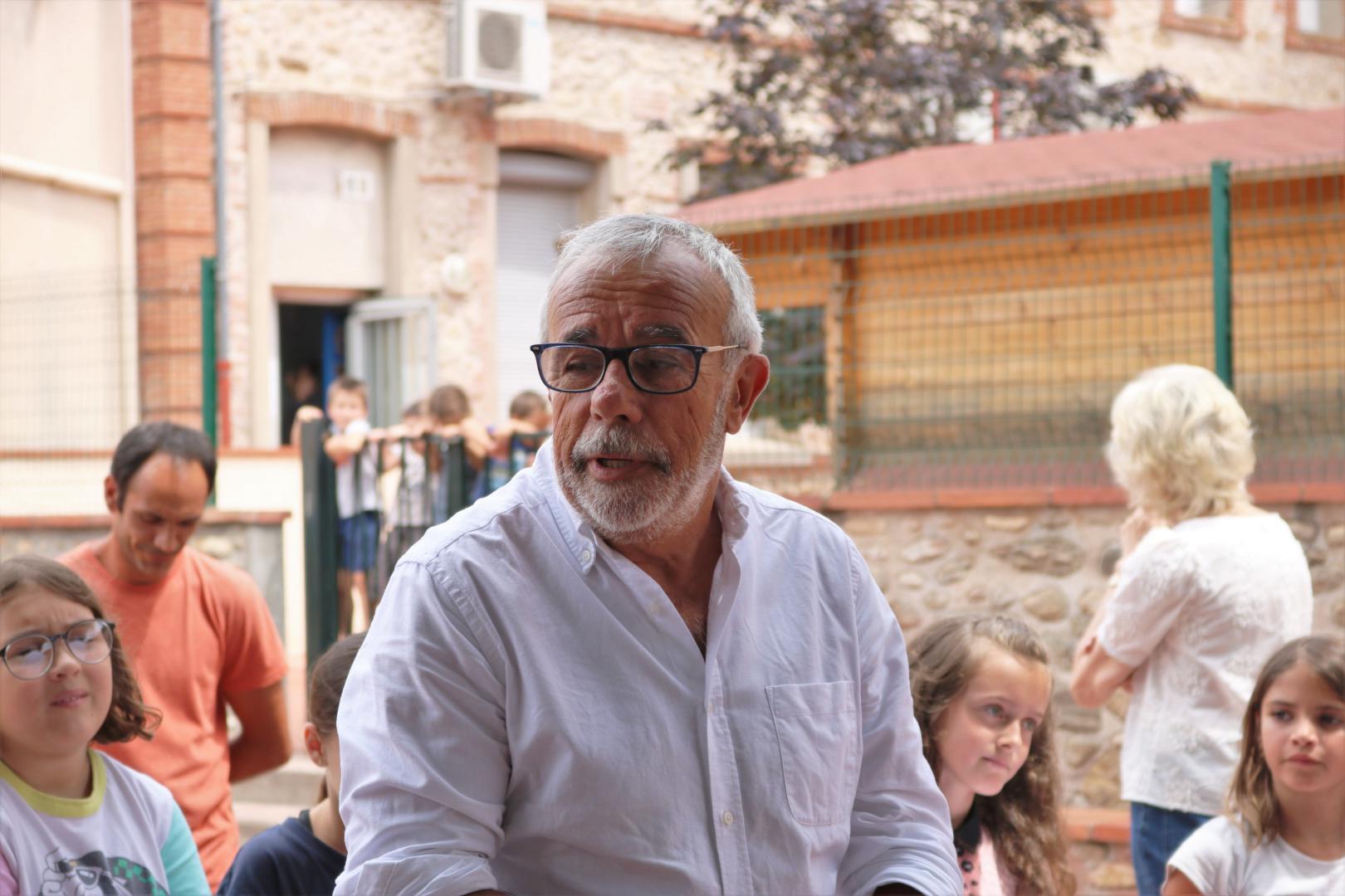 Mme Lehoux, professeur, à l'extrème gauche ; M. Porteix, Maire de Sorède, au centre,