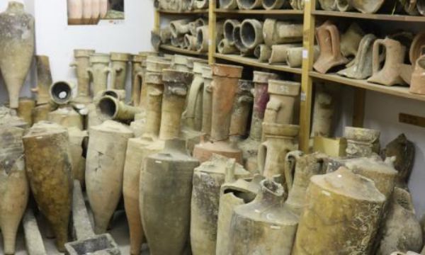 Le deuxième groupe visita la réserve archéologique de la ville de Port Vendres sous la houlette de Michel Salvat qui gère ce lieu. Une quantité impressionnante de biens culturels maritimes sont ici : ils ont été nettoyés, répertoriés et classés afin de permettre à des chercheurs ou des étudiants de les exploiter. La plupart étaient enfouis dans la rade de Port Vendres, refuge naturel pour les embarcations, recouverts de vase ce qui a permis une excellente conservation. Certaines amphores avaient encore leur contenu !