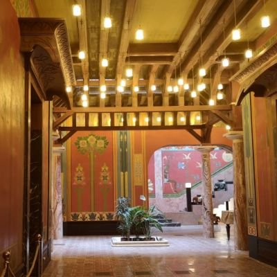 Le château tient à la fois de la villa palatiale et d’un temple antique, fruit du rêve d’Emmanuel Laurens, voyageur éclairé, amateur des pays lointains, à la fin du XIXème siècle. Boiseries délicates, céramiques, peintures et fresques égyptianisantes resplendissent de couleurs, en mêlant avec finesse le goût pour l’Orient et celui pour l’Art nouveau, éclatant dans les ferronneries et pièces de mobilier.