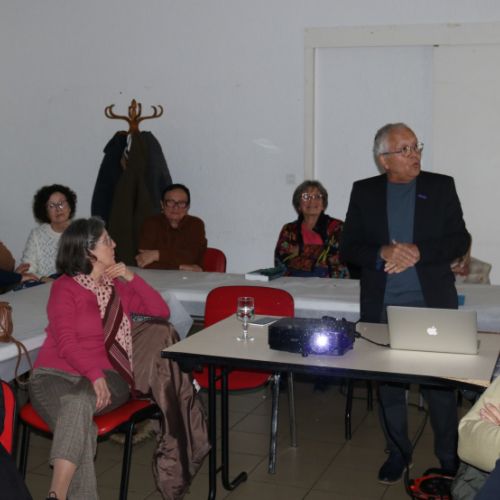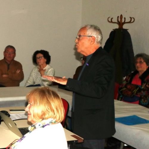 Après une visite de l’église et un déjeuner pris dans une salle municipale , Manuel Menendez , professeur, écrivain , sculpteur et photographe présente son livre Tumbas en la costa nous faisant partager la richesse artistique de sa Catalogne natale, abordant les concepts de frontière à travers son vécu familial et aidant à mieux comprendre les exils sud-nord , la retirada. En visitant 6 tombes, Manuel Menendez brosse des tableaux originaux de Machado, Maillol , Benjamin ,Calders, Dali et Palau i Fabre