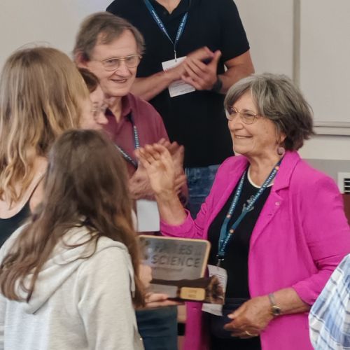 La proclamation des résultats a fait l’objet de la remise de trois trophées réalisés à l’IUT, par Cécile Brennan-Sardou, présidente de l’AMOPA 66 pour le lycée Arago, par Frédérik Thierry, doyen de l’UFR SEE de l’UPVD, pour le collège Saint Pierre de la mer, et Alan Brazo, joueur de rugby à l’USAP pour le collège Jeanne d’Arc, lauréat final.