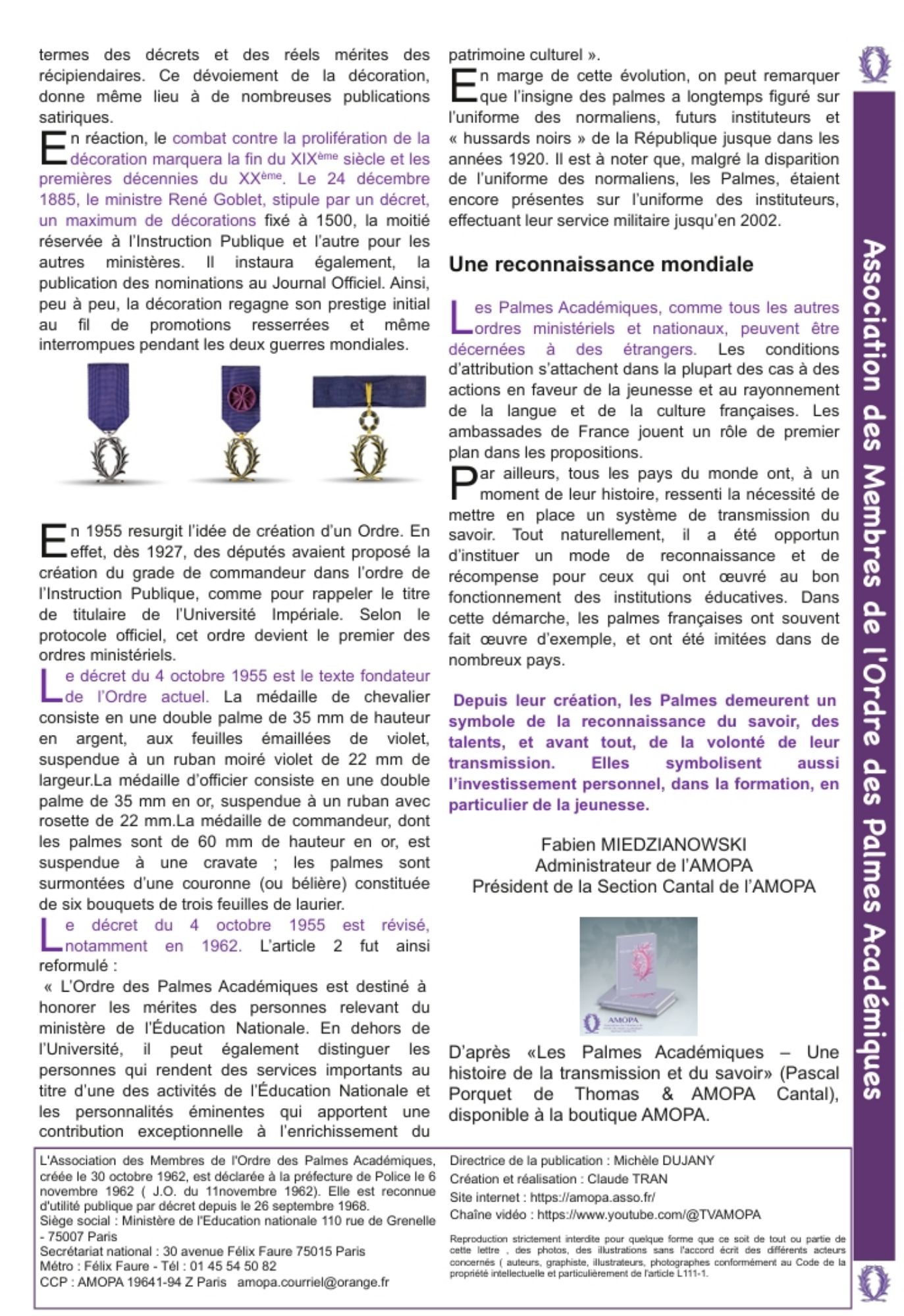 Le décret du 4 octobre 1955, signé par le Président de la République, René Coty, a institué l’Ordre des Palmes académiques comportant les grades de chevalier, d’officier et de commandeur