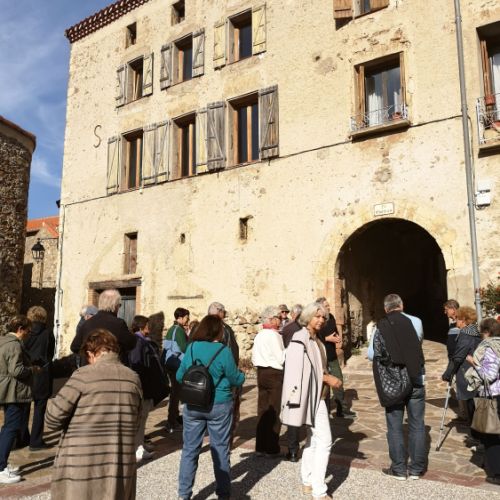 Secondé par son épouse Marie Occhi, Bernard Caillens nous a fait arpenter les rues du village, et peu à peu a dévoilé ce que furent la vie et l’évolution de ce territoire, depuis le haut Moyen-Age à l’histoire plus récente. Un peu plus de trente amopaliens ont cheminé auprès de cet homme exceptionnel, sensibles à sa flamme et sa passion, nourries par une curiosité pétillante et une érudition impressionnante que nous retrouverons avec plaisir dans l’ouvrage qu’il vient de publier en juillet 2025 aux éditions « les presses littéraires ». Merci l’ami. Grâce à toi, nous avons vécu une magnifique journée, tonique infiniment, et bénéfique à nos neurones. Et l’on sait que tu feras encore d’autres découvertes sur ton territoire chéri, si bien peint par ton épouse Marie.
