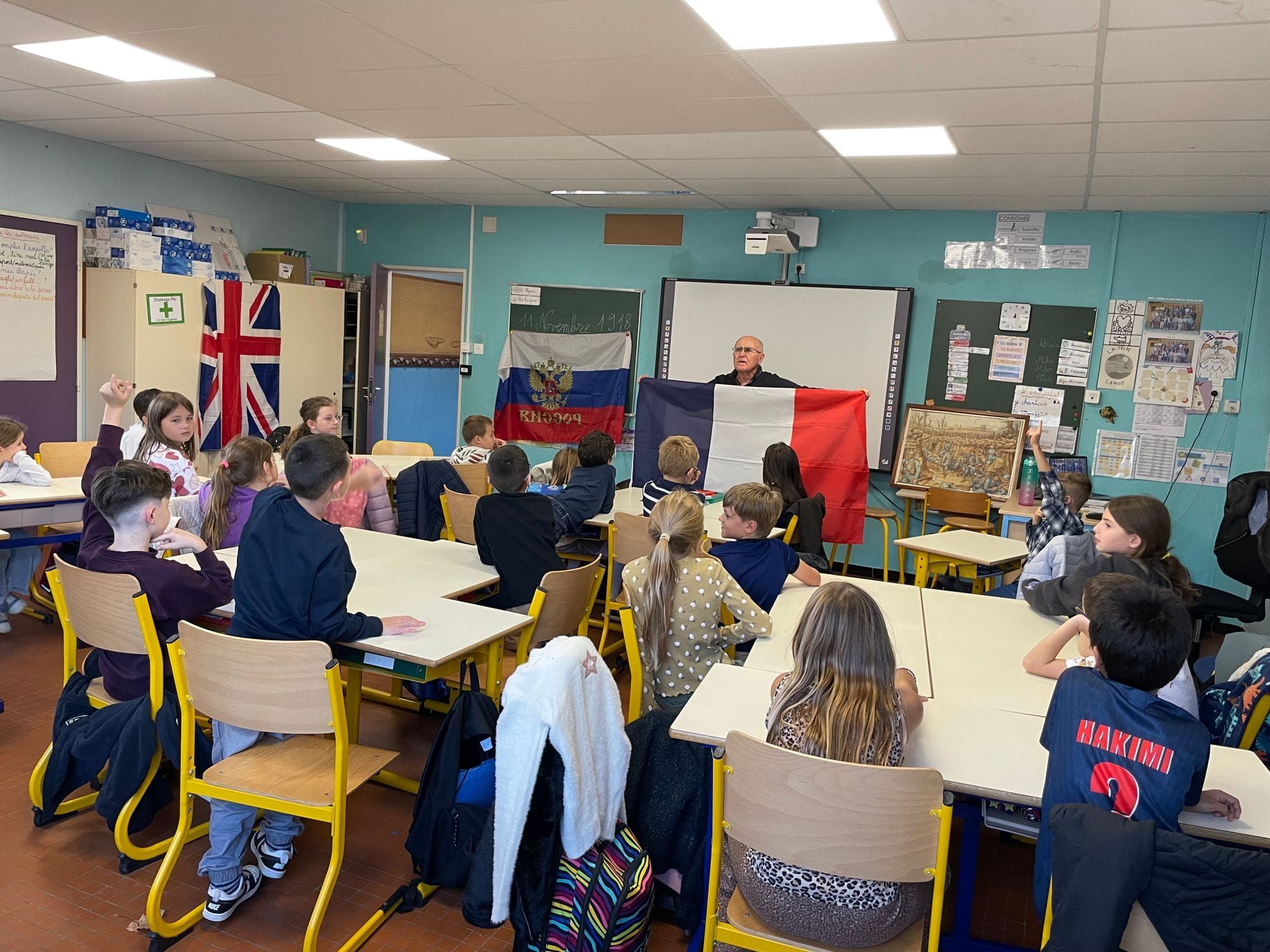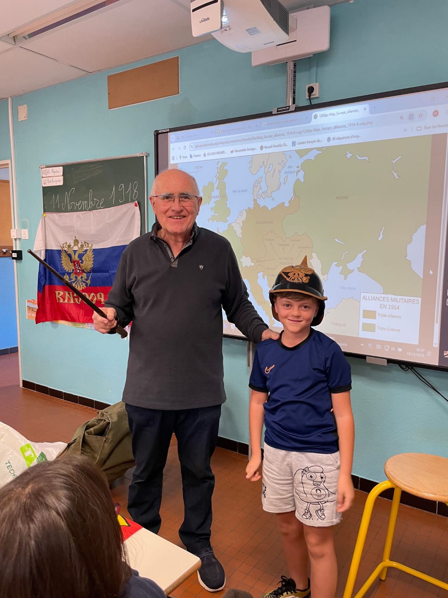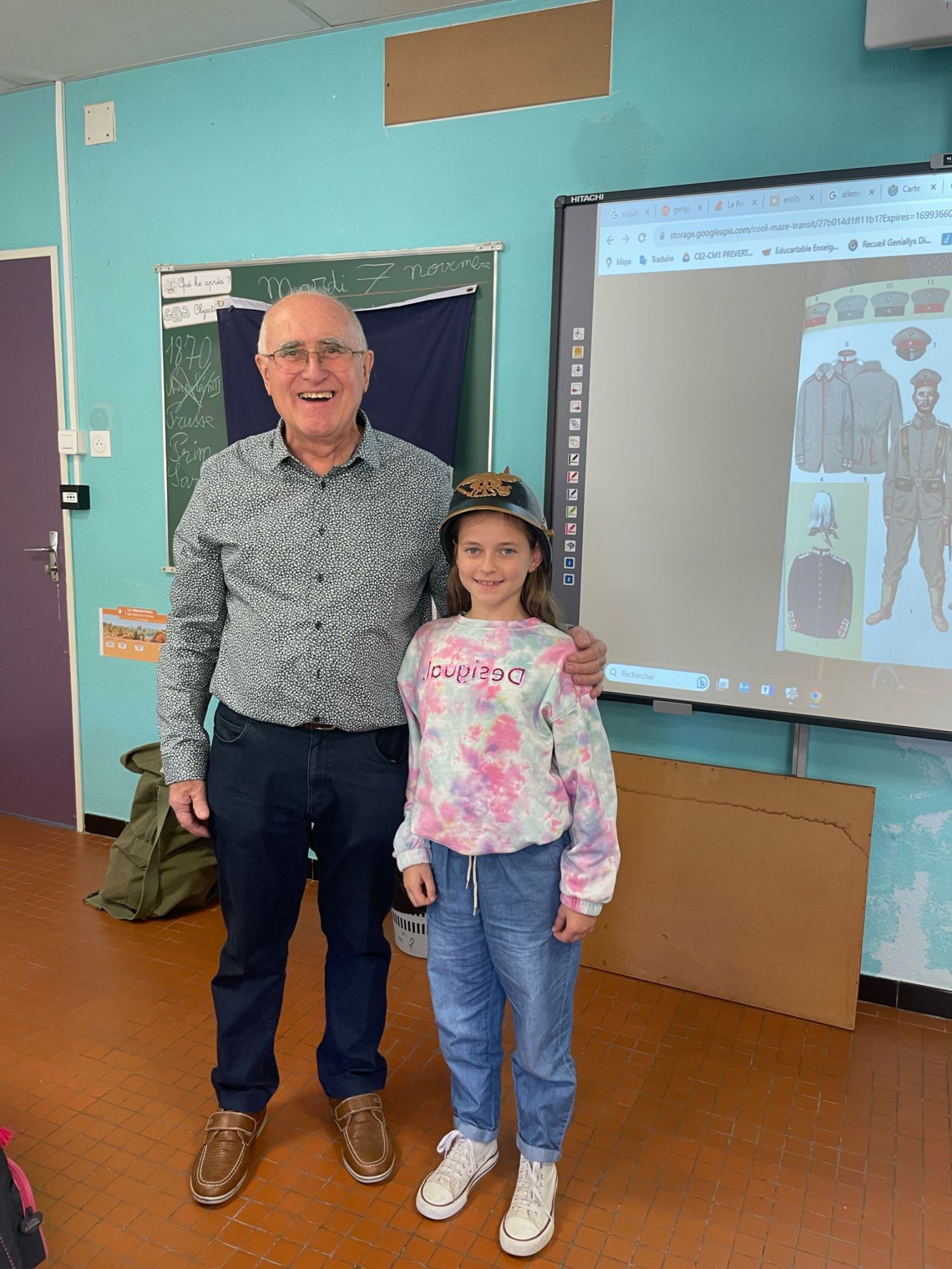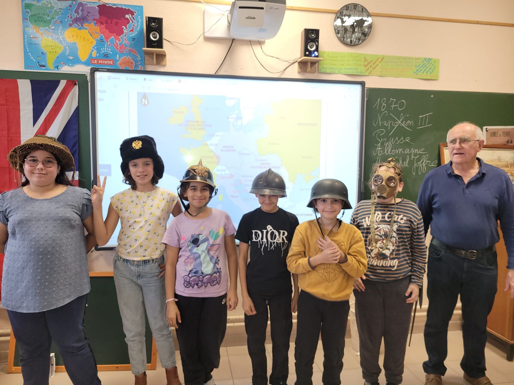 Les élèves sont très intéressés: ils manipulent les différents objets, essayent les casques, les calots, les chapskas des différents belligérants, posent des questions pertinentes et sont très déçus quand la sonnerie retentit!